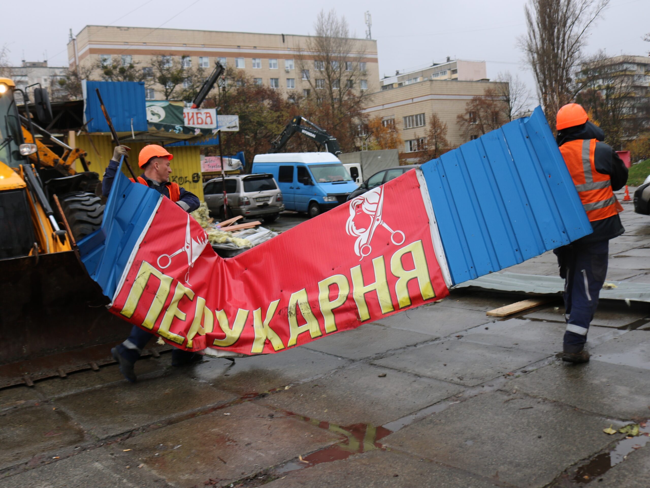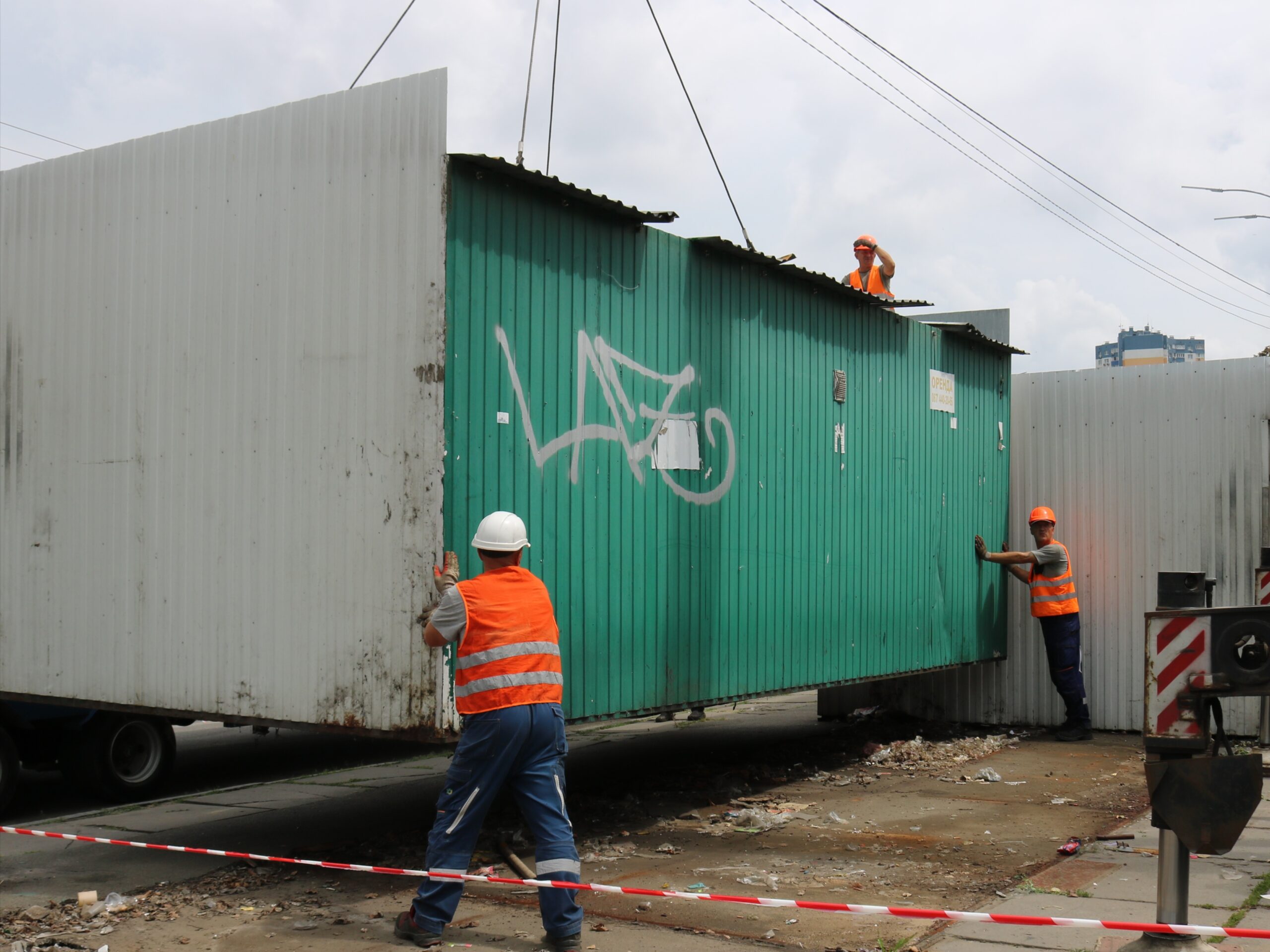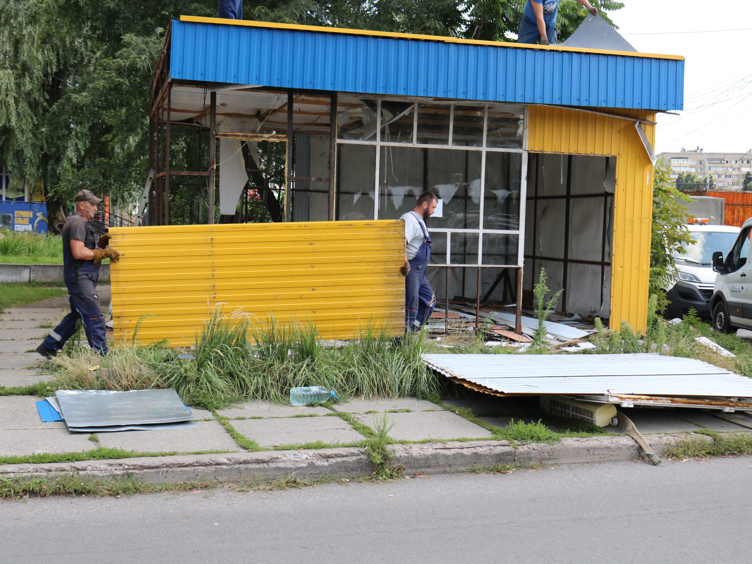 Під час проведення робіт працівники КП «Київблагоустрій» зіткнулися з тим, що переважна частина місцевих кіосків перевищувала дозволені для транспортування габарити. У зв’язку з цим більшість конструкцій доводилося розбирати на частини, в окремих випадках залучаючи важку техніку.